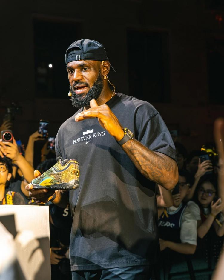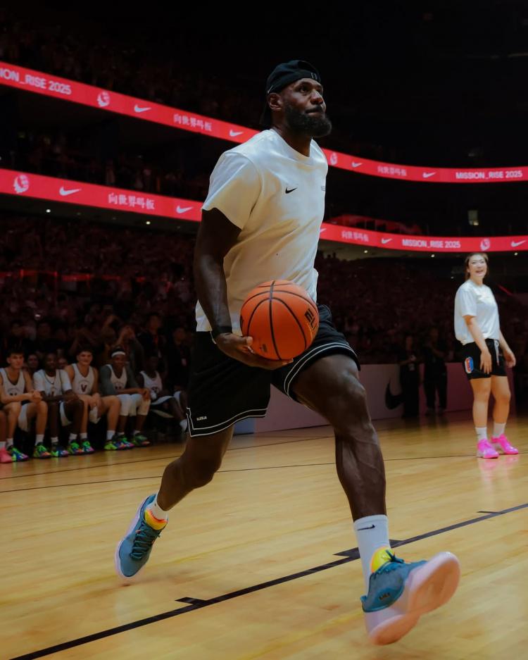 “勒布朗-詹姆斯上周回到中国,开启了‘Forever King’之行,以庆祝他首次亚洲行的20周年。在上海和成都,大批球迷热情迎接了这位篮球巨星。詹姆斯不仅参与了问答环节和产品推广活动,还与中国耐克RISE项目的年轻球员进行了互动。 ”该媒体写道。
